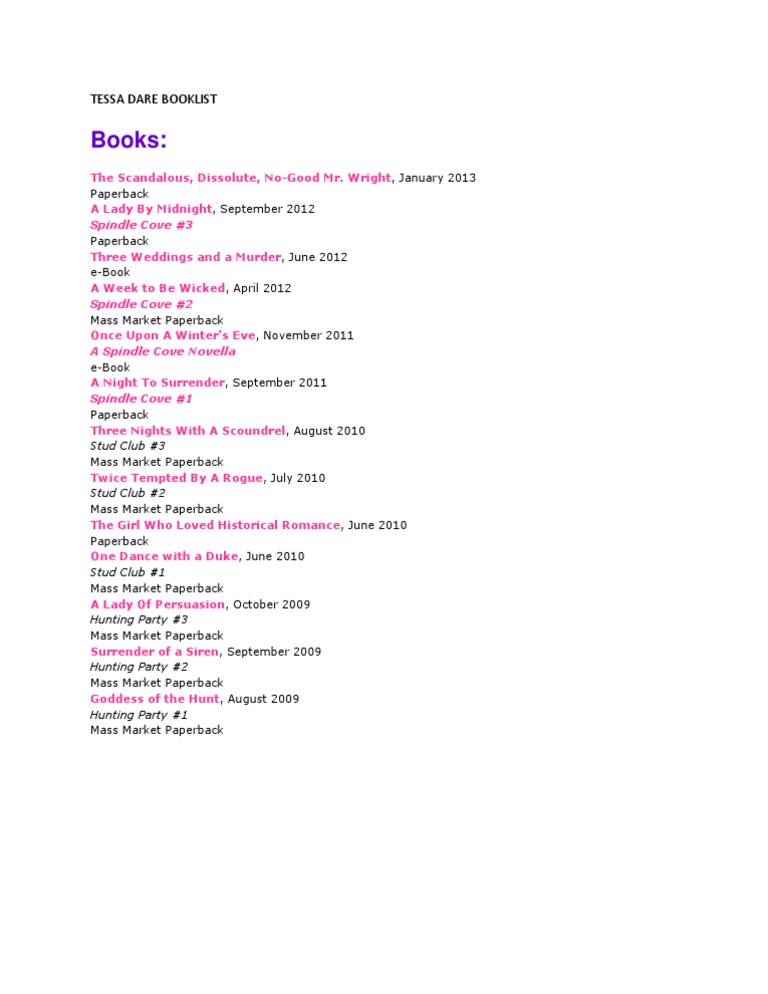 Tessa dare books in order. Beauty and the blacksmith (spindle cove #3.5). The governess game read online tessa dare. Her books have won numerous accolades, including romance writers of america's prestigious rita® award and multiple rt book reviews reviewer's choice awards. Sign up for free today, and start reading instantly! Une semaine de folie (2014) and other, read online free in epub,txt at freeonlineread.net. The wallflower wager read online tessa dare. Books, baby goats, loki the rescue puppy, brazilian tv, bridgerton. Her books have received numerous accolades, including romance writers of america's prestigious rita® award (twice) and multiple rt book reviews reviewer's choice awards. Tessa dare is the new york times and usa today bestselling author of twelve historical romance novels and four novellas. Sign up for tessa's newsletter and be the first to hear about new books and hot deals! The wallflower wager read online tessa dare. Any duchess will do (spindle cove #4).
